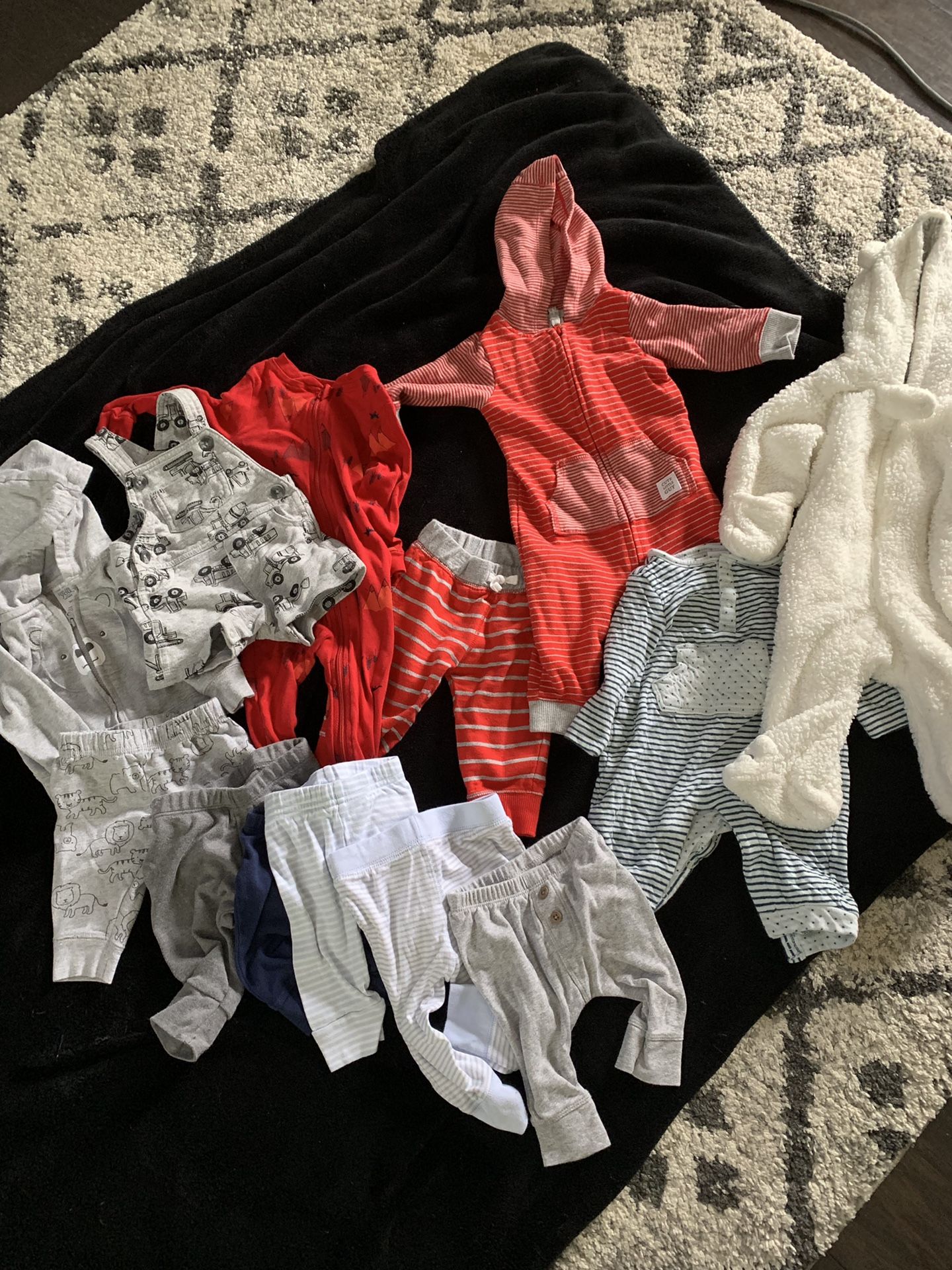 13 piece baby boy lot, all hardly used (you know how that goes). In great shape, smoke free/pet free. Almost all pieces are Carter, the blue striped romper is Gymboree and red long sleeve onesie is Dip (Fred Meyer).