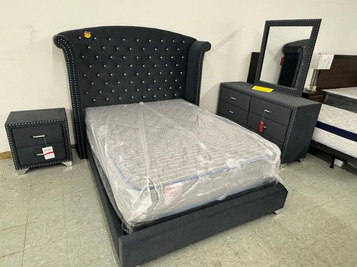 Melody Velvet 4 Piece Queen Bedroom Set▪️ Queen Bed/Dresser/Mirror/Nightstand ▪️💸 New ▪️ Delivery and Finance Available
