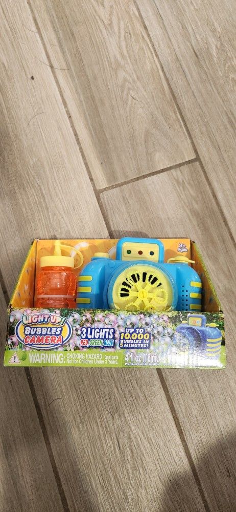2 Light Bubble Blower Camera with 3Lights. Comes with a bottle of Bubble Solution. $9