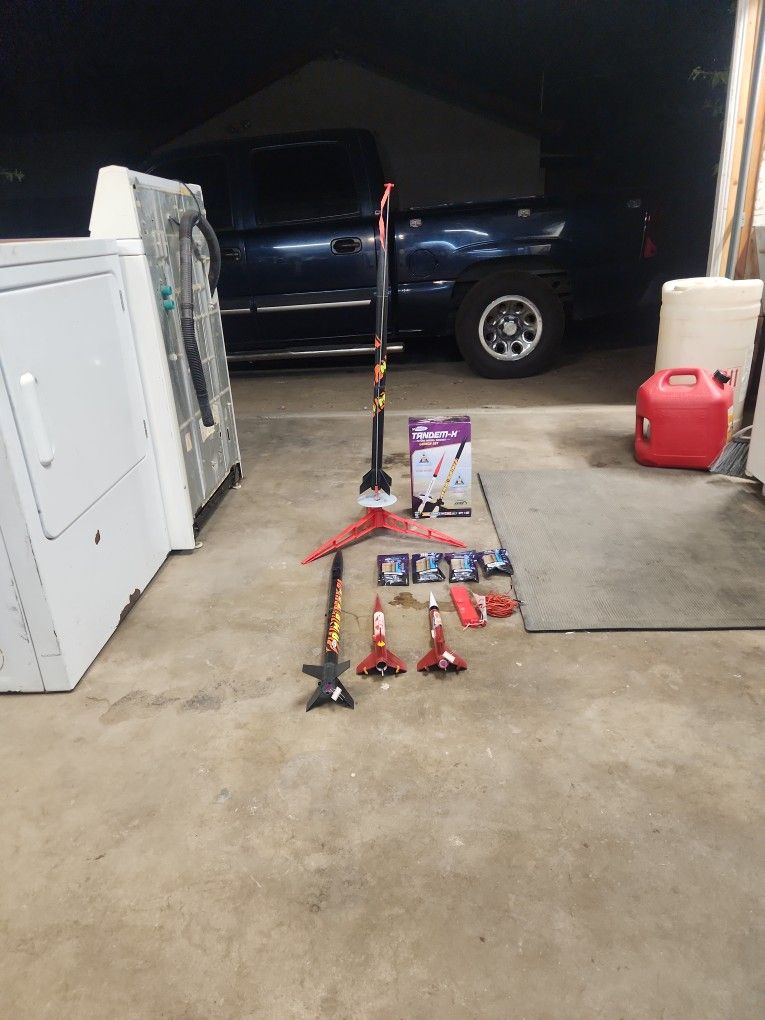 4 rockets ready to be launched! Comes with 4 packs of motors. 2 launch pads included! Ready to rock and roll!