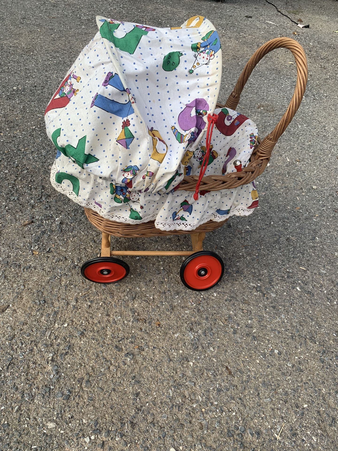 Antique Wicker Baby Doll Bassinet Buggy Carriage Stroller White/ Alphabet Joker