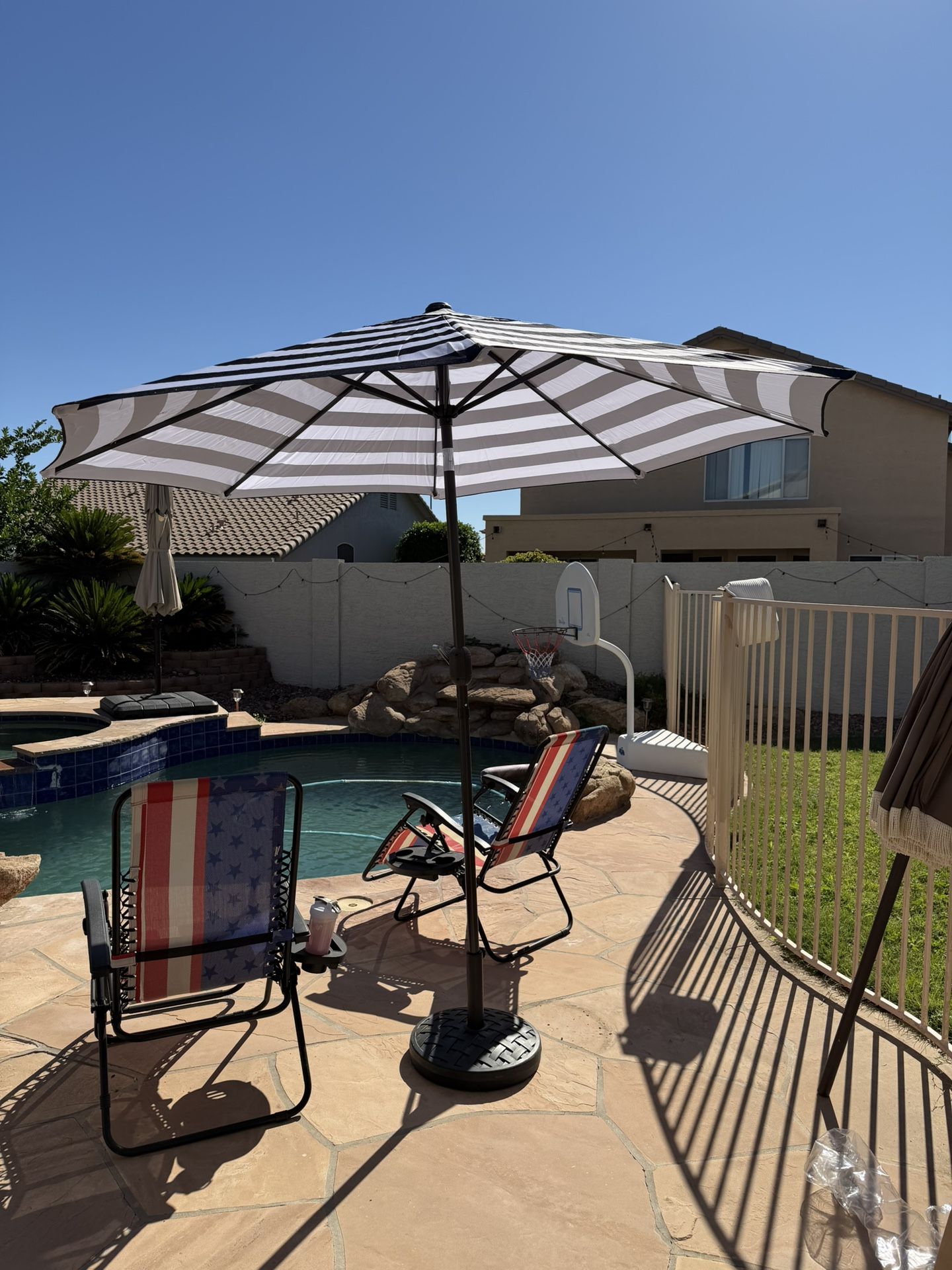 9’ Umbrella Black & White Striped Brand new umbrella $40 (No stand) See photos Cash or Zelle only You pick up, Off of N. 81st Ave. and W Deer Valley