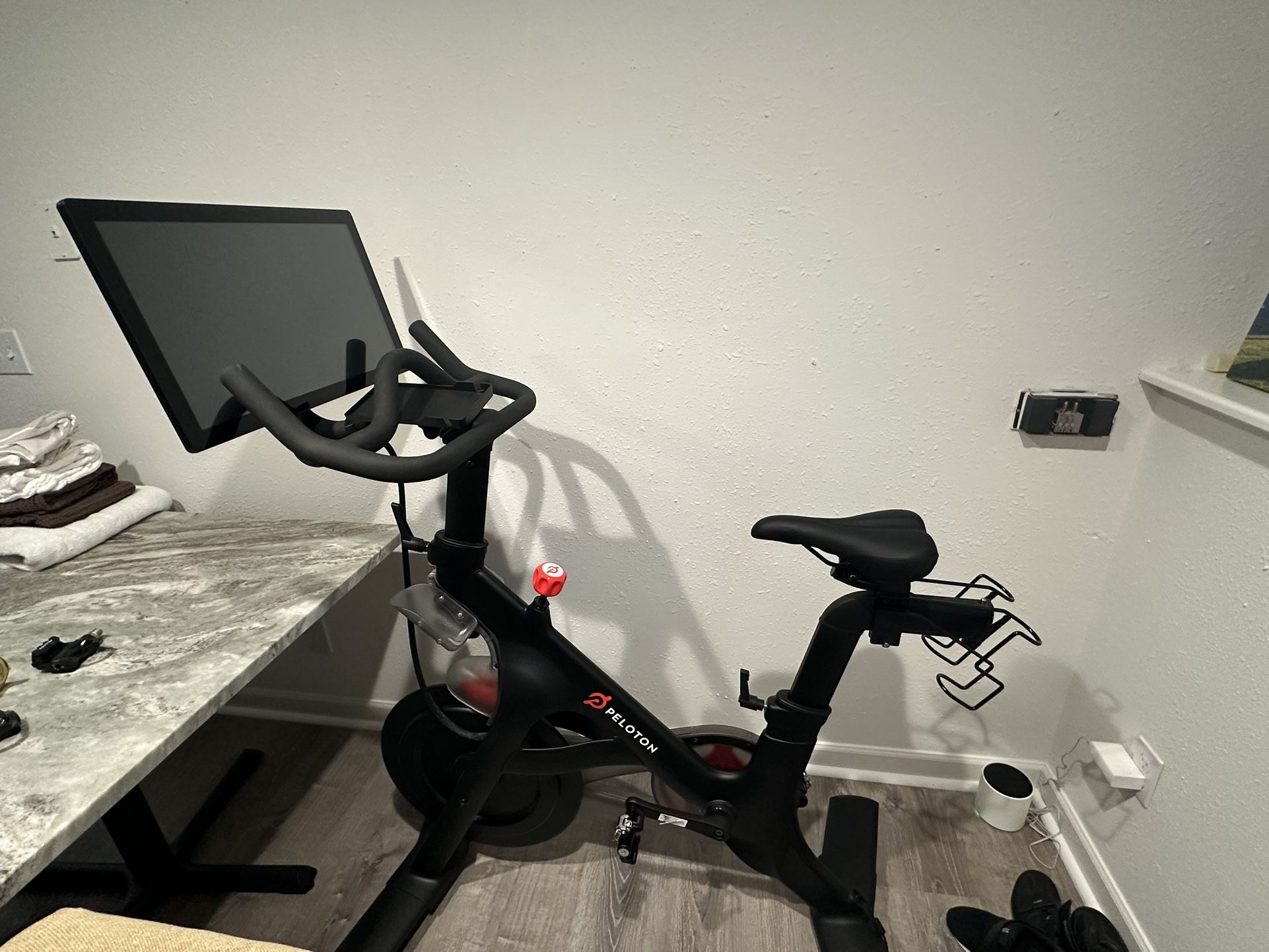 Lightly used (~100 rides). No noticeable damage on bike. Scuffs on shoe clips. Comes with additional set of dual sided clips (see pictured on bike) to open up different shoe options. 2lb hand weights optionally included.