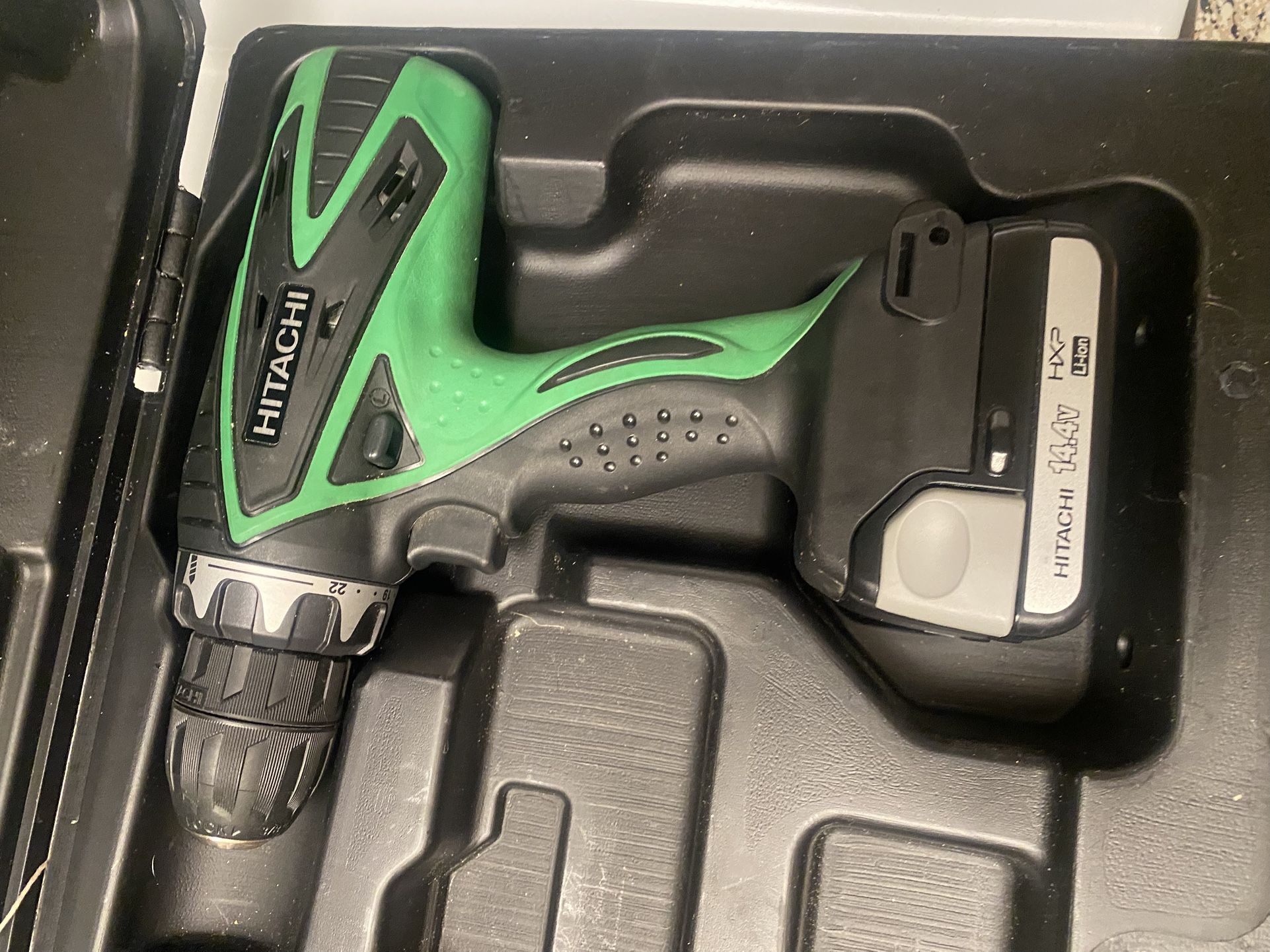 Hitachi Cordless Drill set: Drill + Flashlight + 2 Rechargeable Batteries + Black storage/ carrying Case (No battery charger) Barely used/ works as intended Pick up S. Austin (Stassney)