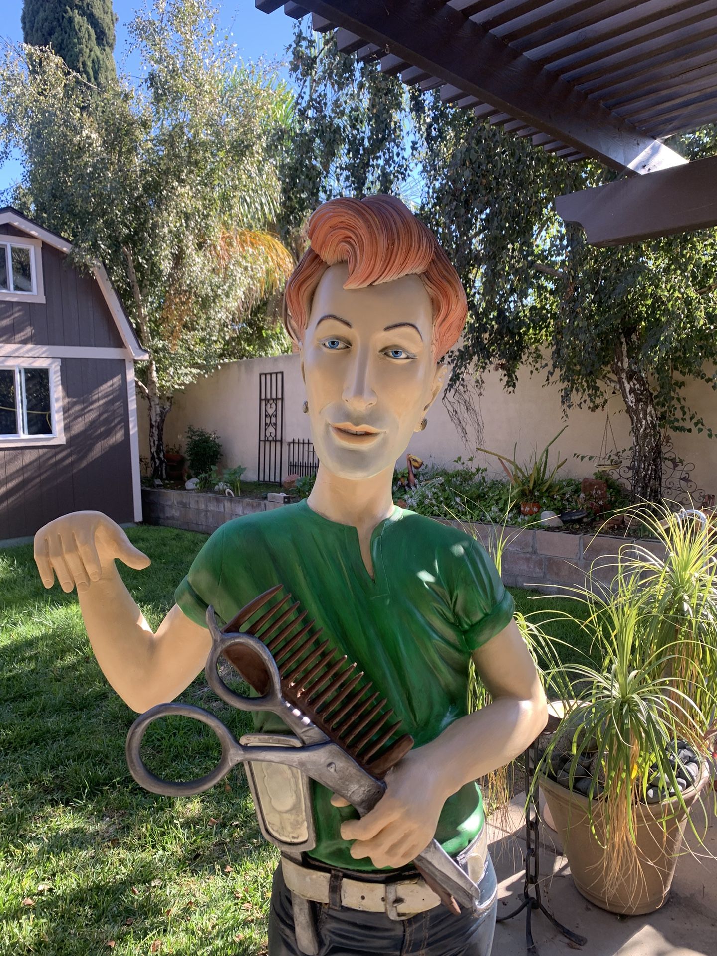 Came off the Burbank lot, given to Conan as a welcome gift when he came to LA for the Tonight Show. I am making space in my house and it’s time to rehome him. Could be a great mascot for a hair salon also ( his original purpose).