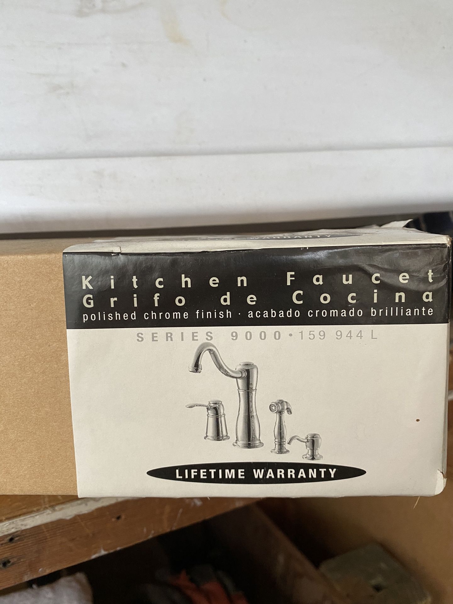 New in box, never used Pegasus kitchen faucet set; includes spray nozzle and soap dispenser. Polished chrome finish. $ 80 Local pickup only in Burien. My loss is your gain!