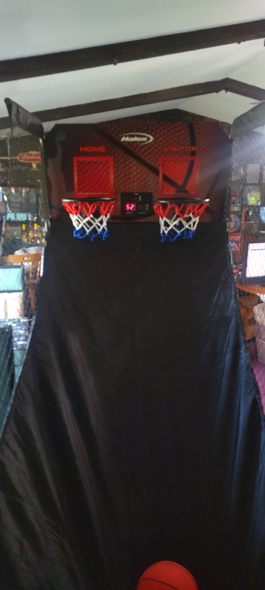 Lots of fun. Put it together used a handful of times. Keeps score. Folds up for storage.