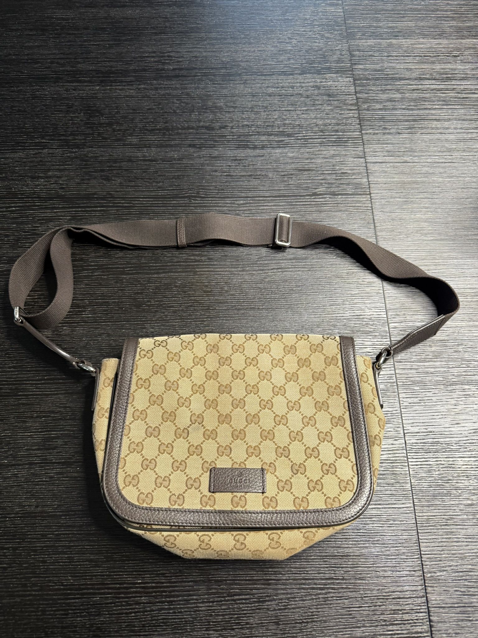 Crossbody bag with adjustable straps brown and tan color used a few times but looks brand new Purchase price $1200 selling price $400 Card and dust bag include Bag ID 449172