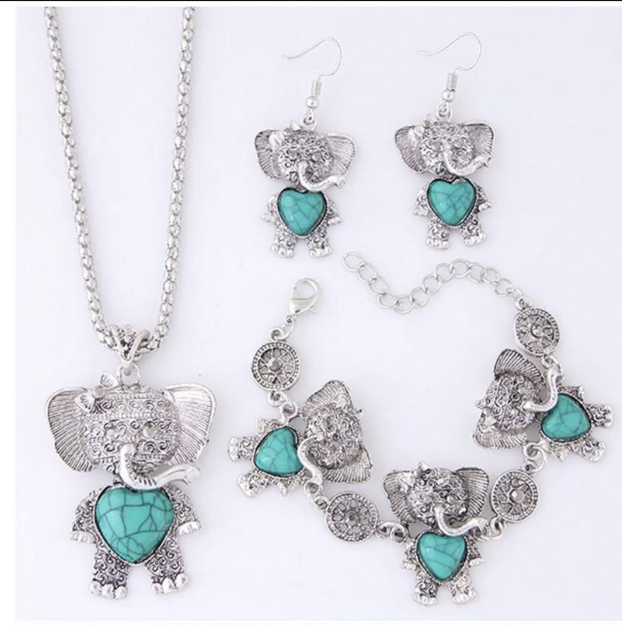 Tibetan Turquoise 3pcs Lucky Elephant Set