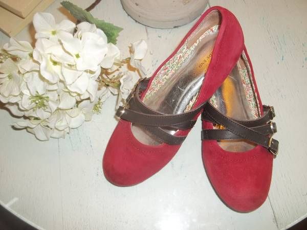 Cranberry red pair of shoes! Perfect for the holidays. Lands End brand. Cute calico print in the inside of the shoes. Suede leather. Girl's size 13. - holiday easter Christmas dress dressy casual school shoe girls shoes