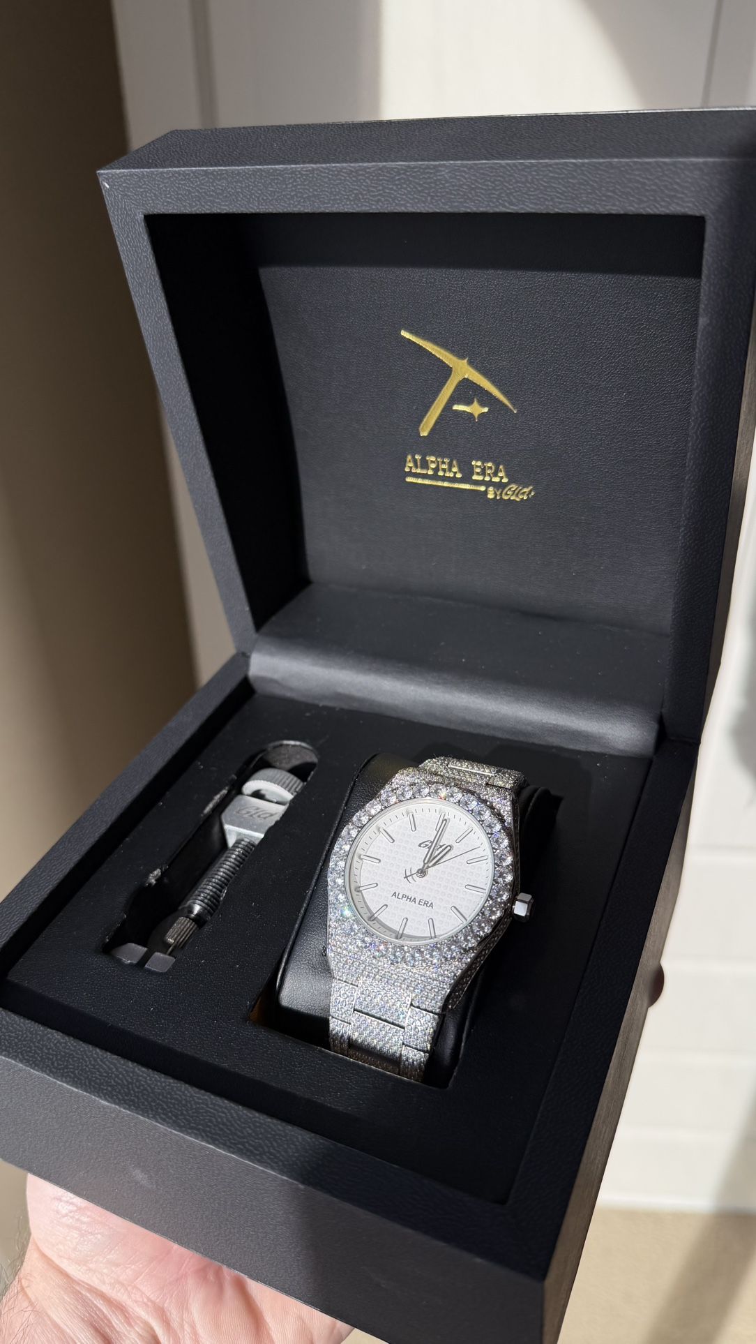The Alpha Era® collection is a culmination of our 3-year journey to bring you prestigious, unparalleled timepieces. Alpha Era watches are crafted from the finest materials and assembled with a custom sweeping movement. You'll feel like an alpha when rocking the newest standard of watchmaking in its most timeless form. *Simple, adjustable sizing from 6" to 8"* *Watch comes with a do-it-yourself tool - No jeweler necessary* Gold Plated: Standard with AAAAA-AAAA quality hand-set CZ Stones Specifications - Case: - 316L Surgical Grade Stainless Steel - Case Size: - 42mm Diameter - Case Thickness: - 11mm (top of glass to bottom caseback) - Movement: - Gold Plated: Features GLD's Exclusive Sweeping Quartz Movement - The first of its kind to feature a smooth and continuous movement with 5 moves per second. You'll see quickly that there is no ticking! What is the difference between an automatic and quartz movement? Click here to see why we chose each of these movements. - Water Resistance: - 5 ATM - Dial Options: - Black Chrono, White or Red - Alpha Era + Black Chrono comes with 24 hours, date and week function. - Strap: - Steel Bracelet - Strap: - Graduating 25-22mm with band fully custom GLD quick-release lock