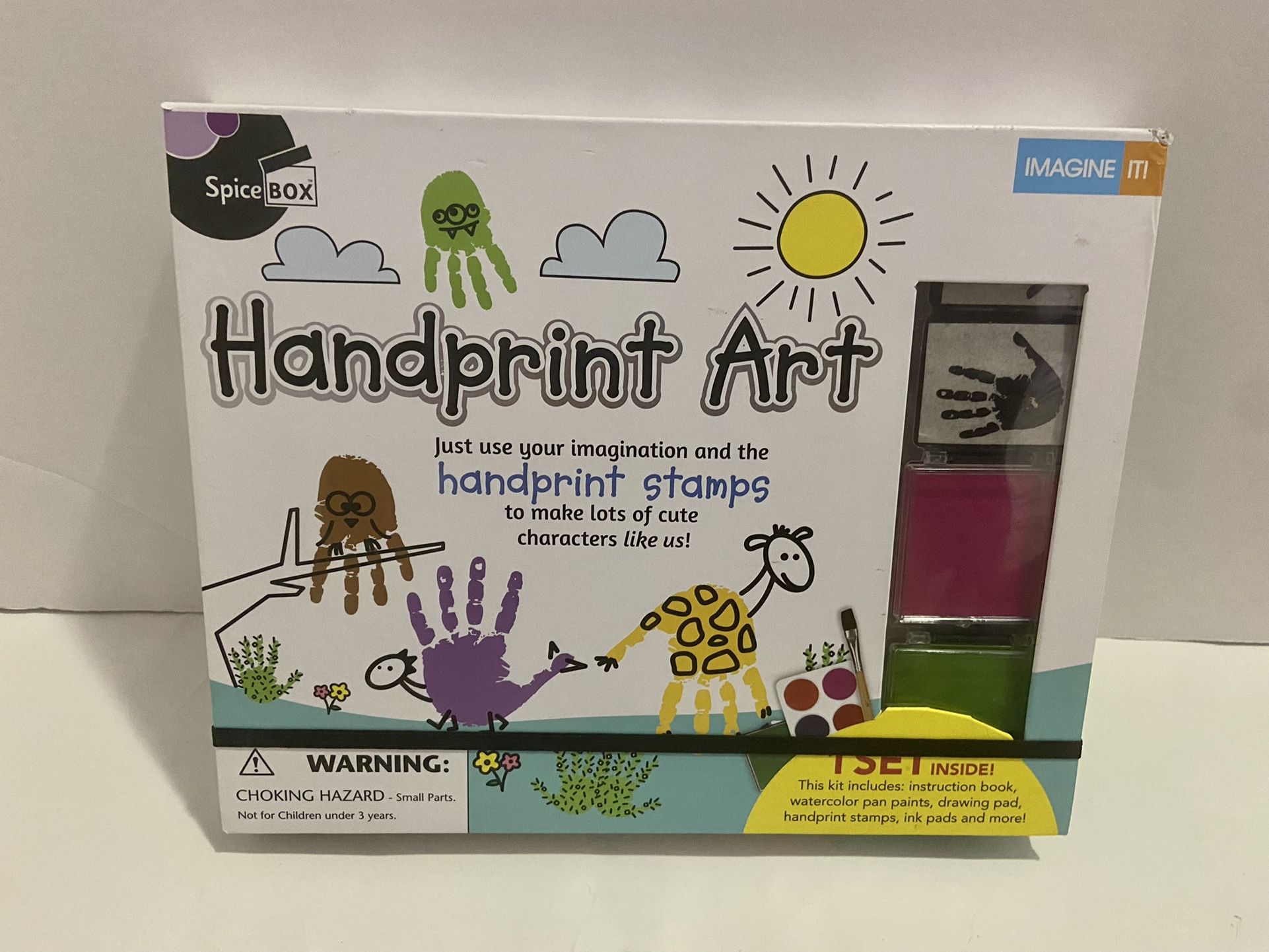 Take finger painting to the next level with the Spicebox Handprint Art Kit. Use your own handprint or try one of the included handprint stamps as the base for your art. Then, turn the handprint into animals and other cute characters. This kit includes an easy-to-follow instruction book, one drawing pad, two handprint stamps, two ink pads, two markers, one paintbrush, and four watercolor pan paints. Recommended ages: 8 and up