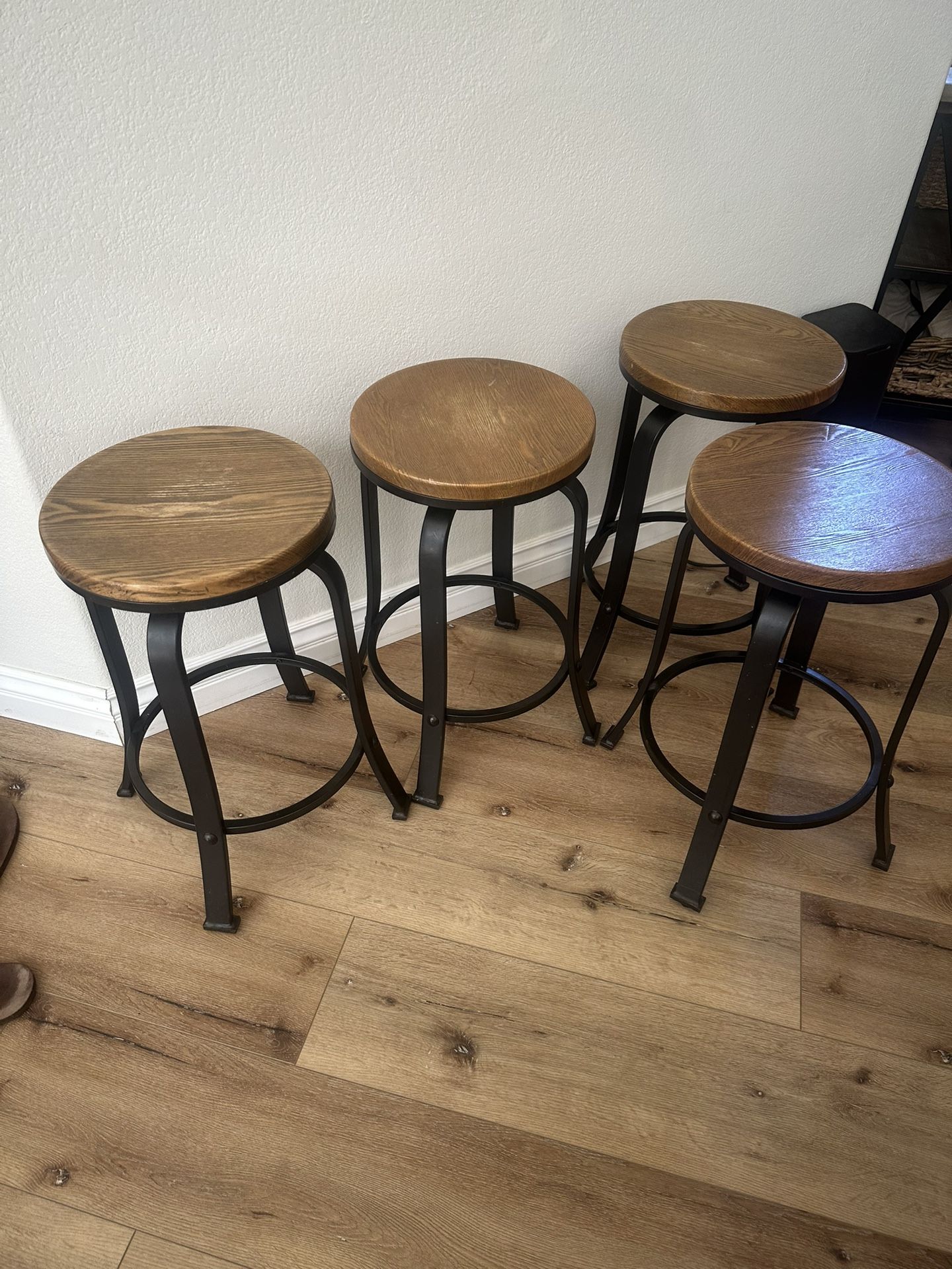 Four swivel bar stools counter height 24 inches. All fully functioning with some wear on the seats ( as pictured)
