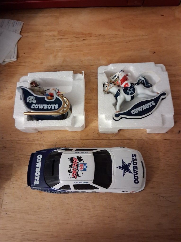 This is 3 dallas cowboys collectable 2 Danbury mint ornaments in excellent condition and 1 super bowl car 75.00 for all 3