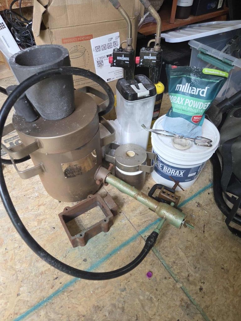 Crucible propane with extra blowtorch. Mini crucible. Extra borax and some other items for it. $100 pick up in Duval