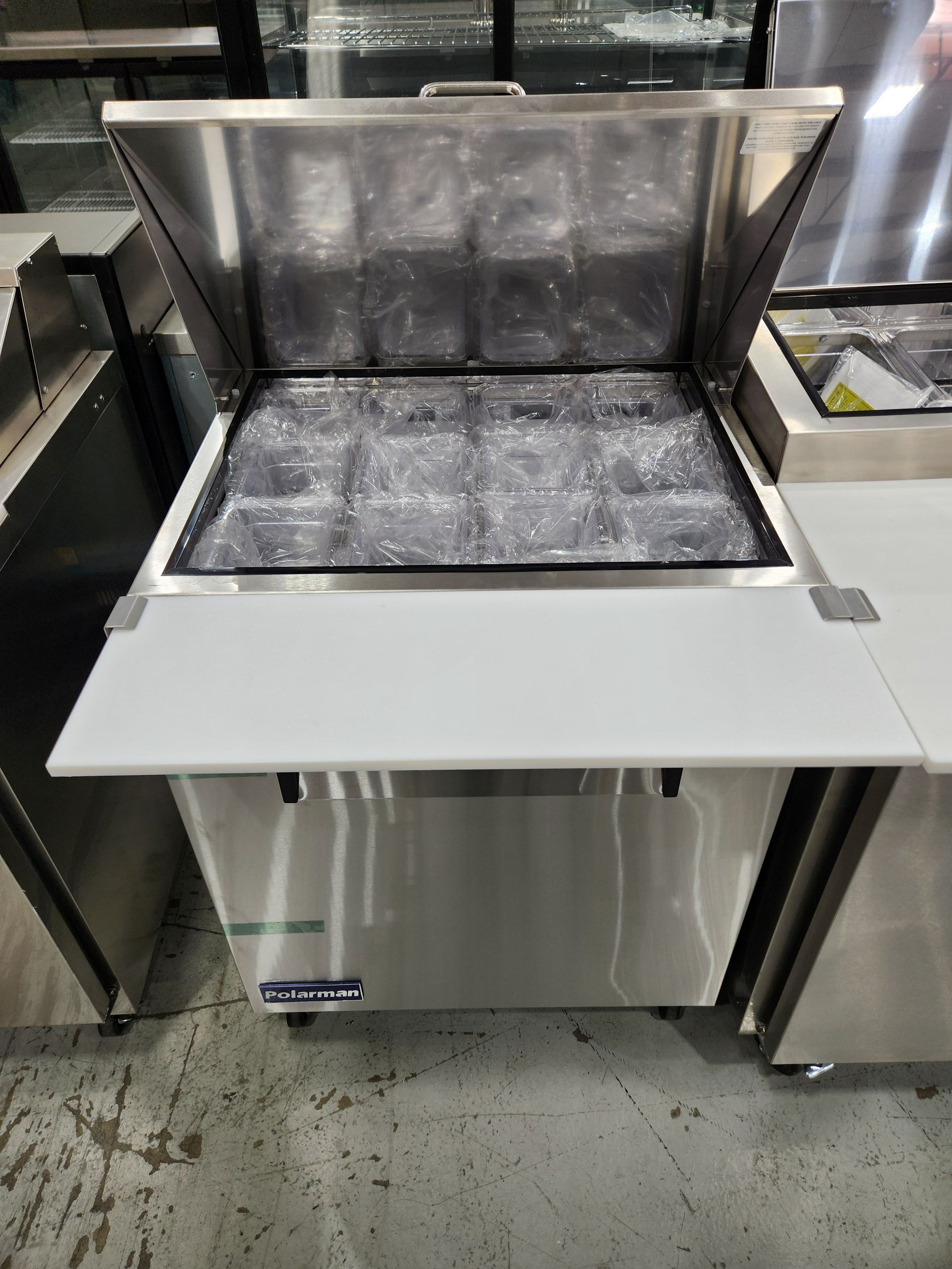 ❄️POLARMAN❄️ Mega Top Sandwich Salad Prep Table PLM-S29KS Width 28 15/16 Inches Depth 34 1/2 Inches Height 43 3/16 Inches Voltage 115 V Amps 3 Amps Hertz 60 Hz Phase 1 Ph Storage Capacity 7 Cu-ft Shelf Capacity 88 lbs Temperature Range 33°F-41°F Gross Weight 276 lbs Legs Height 3 1/4 Inches Warranty 1 Year Labor Warranty*,2 Year Parts*,5 Year Compressor Part Coverage* ***PRICES SUBJECT TO CHANGE*** ***PICK-UP PRICE***