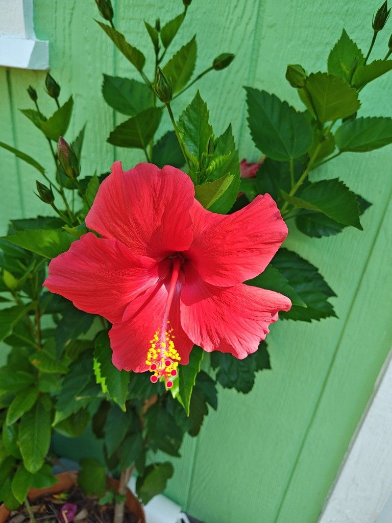 In 4 gal plastic pot. Red flowering, (and some yellow flowering plants too in different pots ) Pick up on N Dale Mabry Hwy,Tampa 33614 area