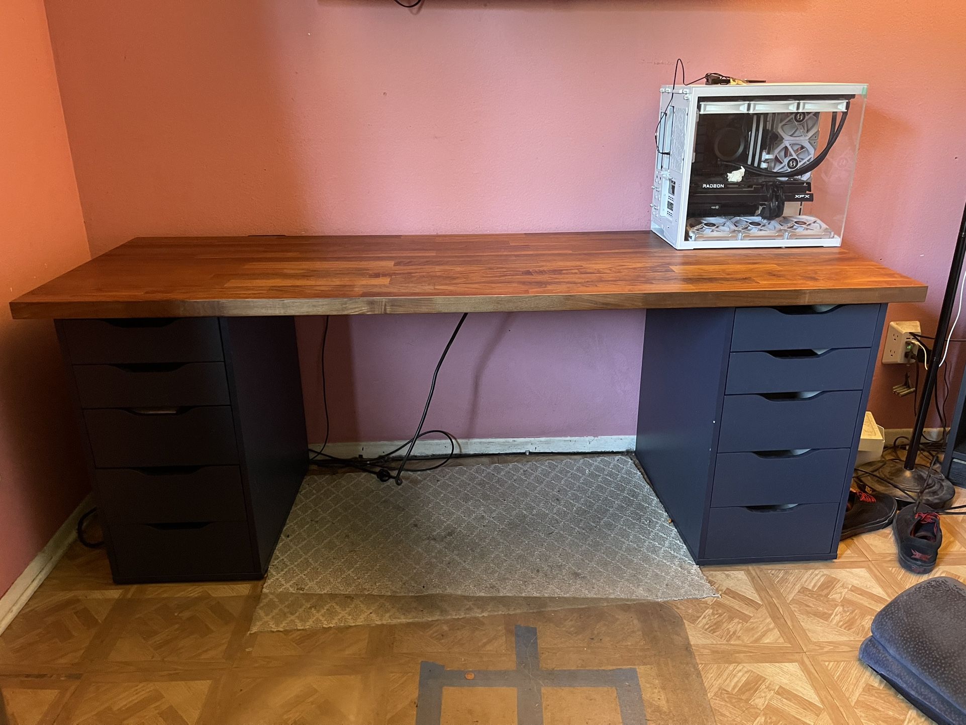 IKEA Karlby 74’+ Drawers was only used as a gaming desk. Also comes with 8 Stainless steel leg still in box, use for height adjustment.