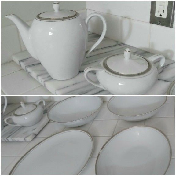 YES! THIS IS AVAILABLE LOCATION 36th St and Turney Ave near Indian School Rd East Phoenix **If you ask me if its available or the location I will not respond because you can't read. I'll give my exact address when you are on the way to pick up.** 8 pc (6 w/2lids) Royalton China Co. Translucent Porcelain Golden Elegance China Japan Gold trimmed edges. TEA POT w/LID 6"Hx8.5"W handle to spout SUGAR BOWL w/LID 7.25" W handle to handle 2 ROUND SERVING BOWLS OVAL SERVING BOWL chip in edge 10"Lx8"Wx2.5"D OVAL PLATTER 12"Lx9.5"W