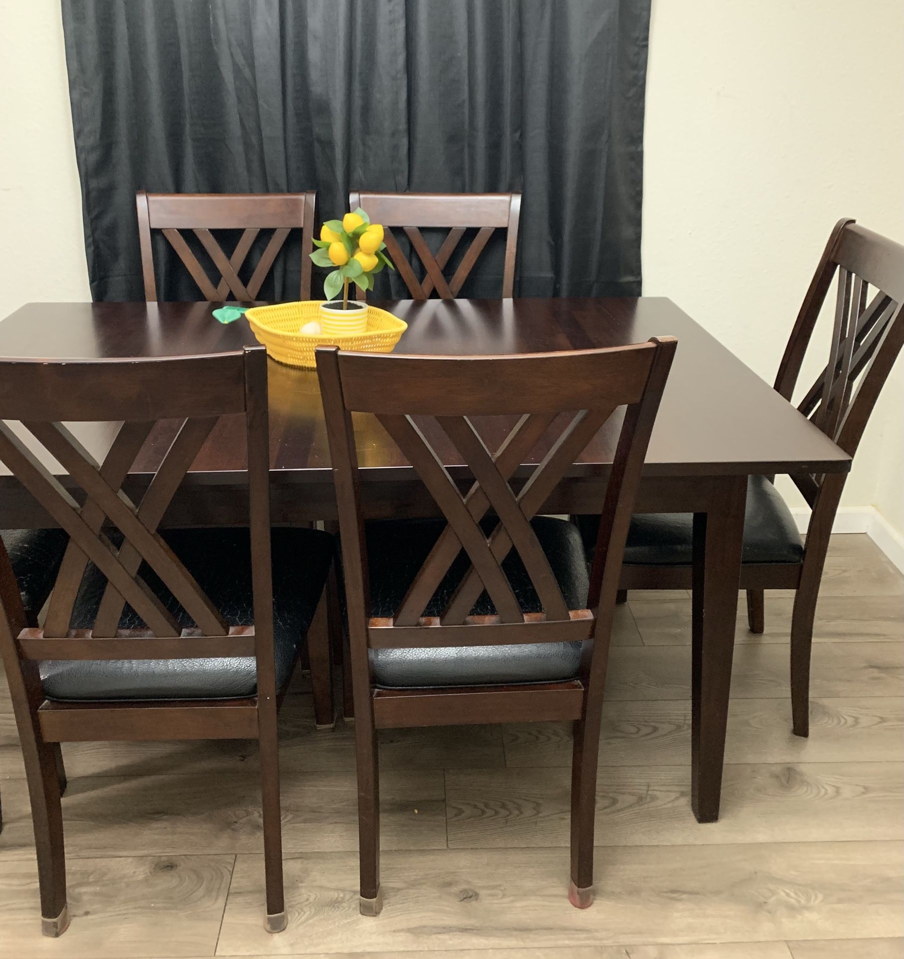 Extending dining table with six chairs.