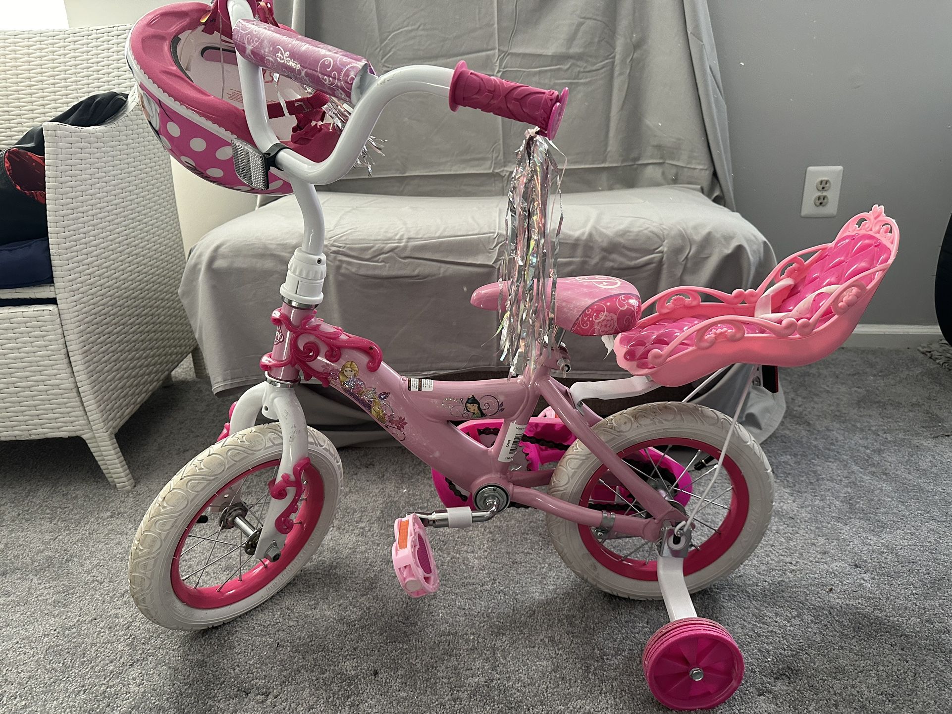 Cute Princess bike, tired need air but it good condition. Comes with Minnie Mouse helmet.