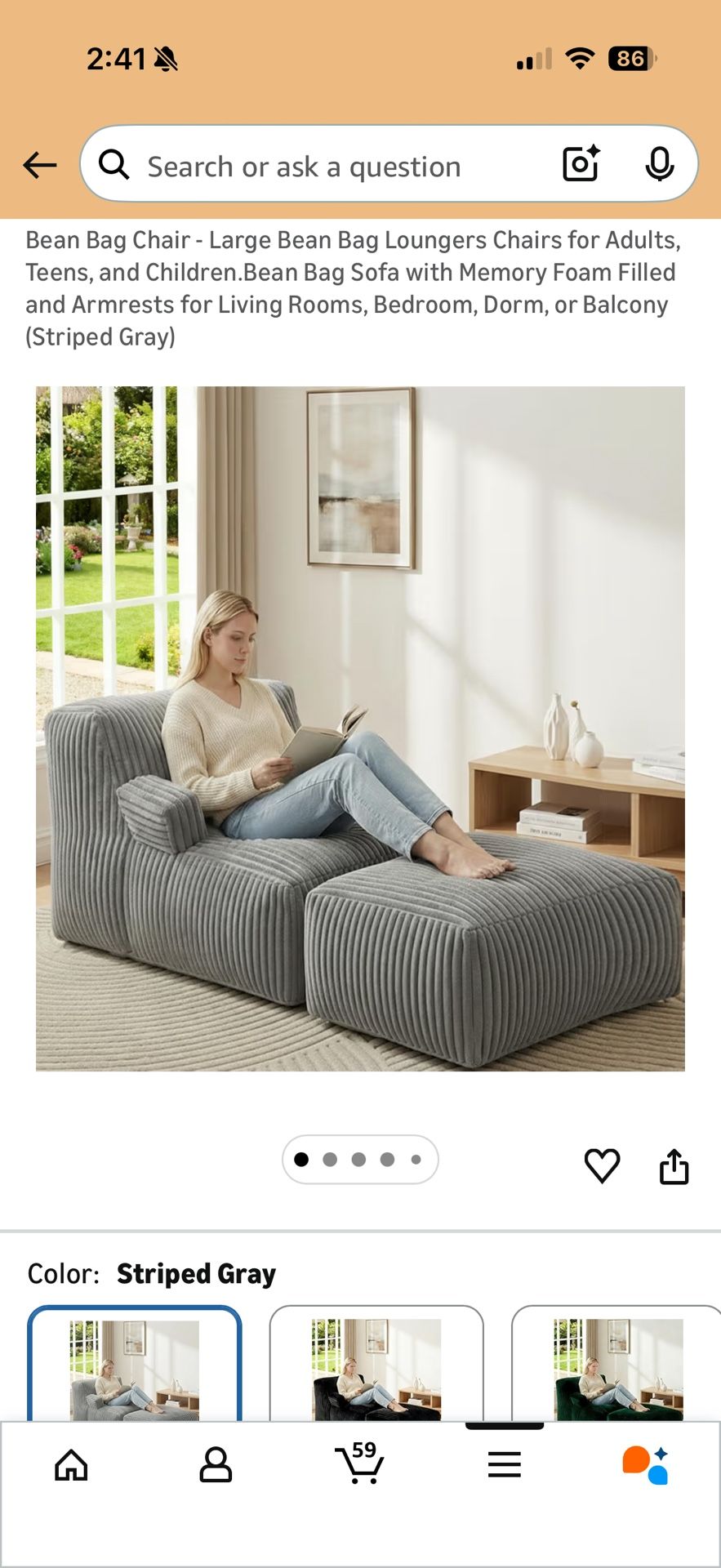 New in box 11368 corona pick up cash only Bean Bag Chair - Large Bean Bag Loungers Chairs for Adults, Teens, and Children.Bean Bag Sofa with Memory Foam Filled and Armrests for Living Rooms, Bedroom, Dorm, or Balcony