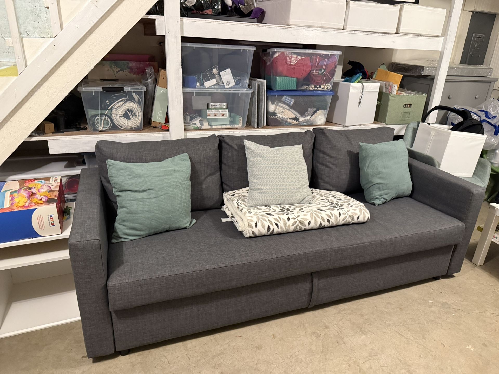 IKEA FRIHETEN Sleeper sofa, Skiftebo dark gray. I bought it last year, and it's barely used. We’re selling it because we're moving out. If you have any questions, please let me know.
