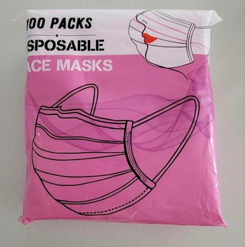 Wecolor 100 Pcs Disposable 3 Ply Earloop Face Masks, Suitable for Home, School, Office and Outdoors (Pink)