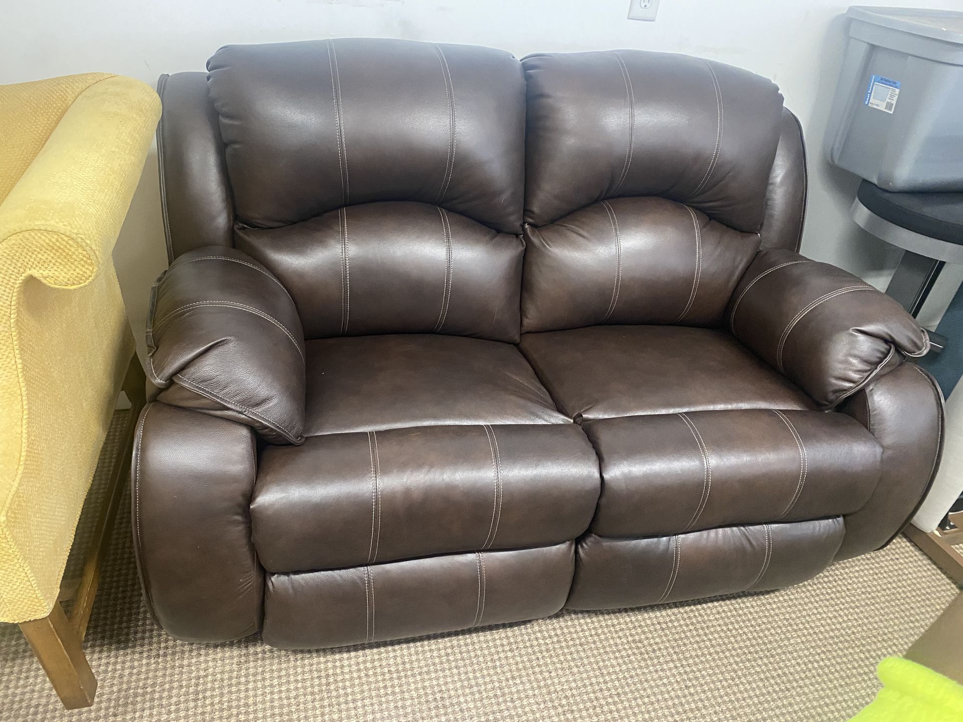 LEATHER POWER RECLINING LOVESEAT BROWN LEATHER DIMENSIONS: 63”(W) x 40”(D) x 41”(H) OPEN BOX/ SCRATCH N DENT/OR DISPLAY ITEM PRICE $399.99+TAX( CASH /CREDIT)
