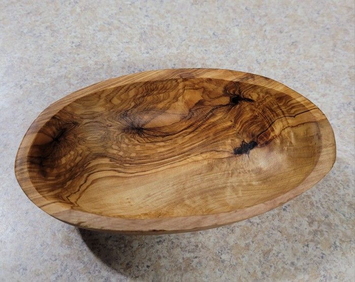 Olive wood bowls for tapas. 100% natural because of untreated olive wood. Food can therefore be left in the bowl completely safely for a longer period of time. Nice deep bowls, approx. 4 to 5 cm. Of course, nuts, creams, salty pastries, and other dips can also be served. After use, simply clean it under running water. Each bowl is naturally shaped oval-shaped and is simply unique due to its grain. The shells are as natural as possible and there may be small areas of bark, which gives each bowl a very special character. Width: approx. 8 cm, height: approx. 4 to 5 cm - Made in Germany - Weight: 7.05 oz (200 g) - Made with real olive wood NOTE: I have 9 available with these tapas bowls, different shapes and patterns, Approx. 14-16 cm Olive Wood