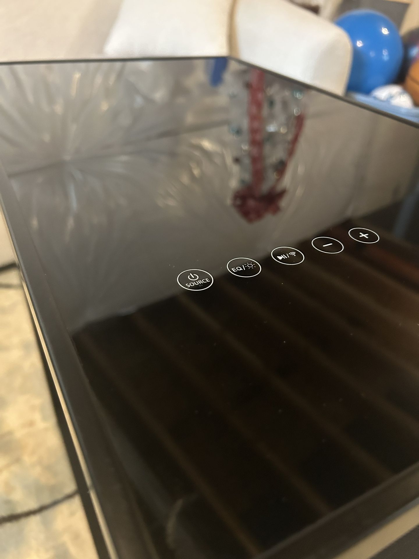 Description of Make and Model listed in one of the pictures. Brand New Black Bluetooth Speaker End Table. This is loud enough to sound your entire house and even a disturbance depending on your neighboring situation. TEMPERED GLASS — No cracks, no water damage, no speaker shortage/Damage the sound is clear as day and the Bass sounds great throughout your whole house! Comes with Charging ports on the back and it still has the original Cord it came with, also in good condition. Never had an incident involving this table and it also has a nice circular light that alternates colors in the center! Can connect to Radio or Personal Device. Bought as an addition to a living set but I’m refurnishing and everything must go! I love this table to bits, very sad to part with it.