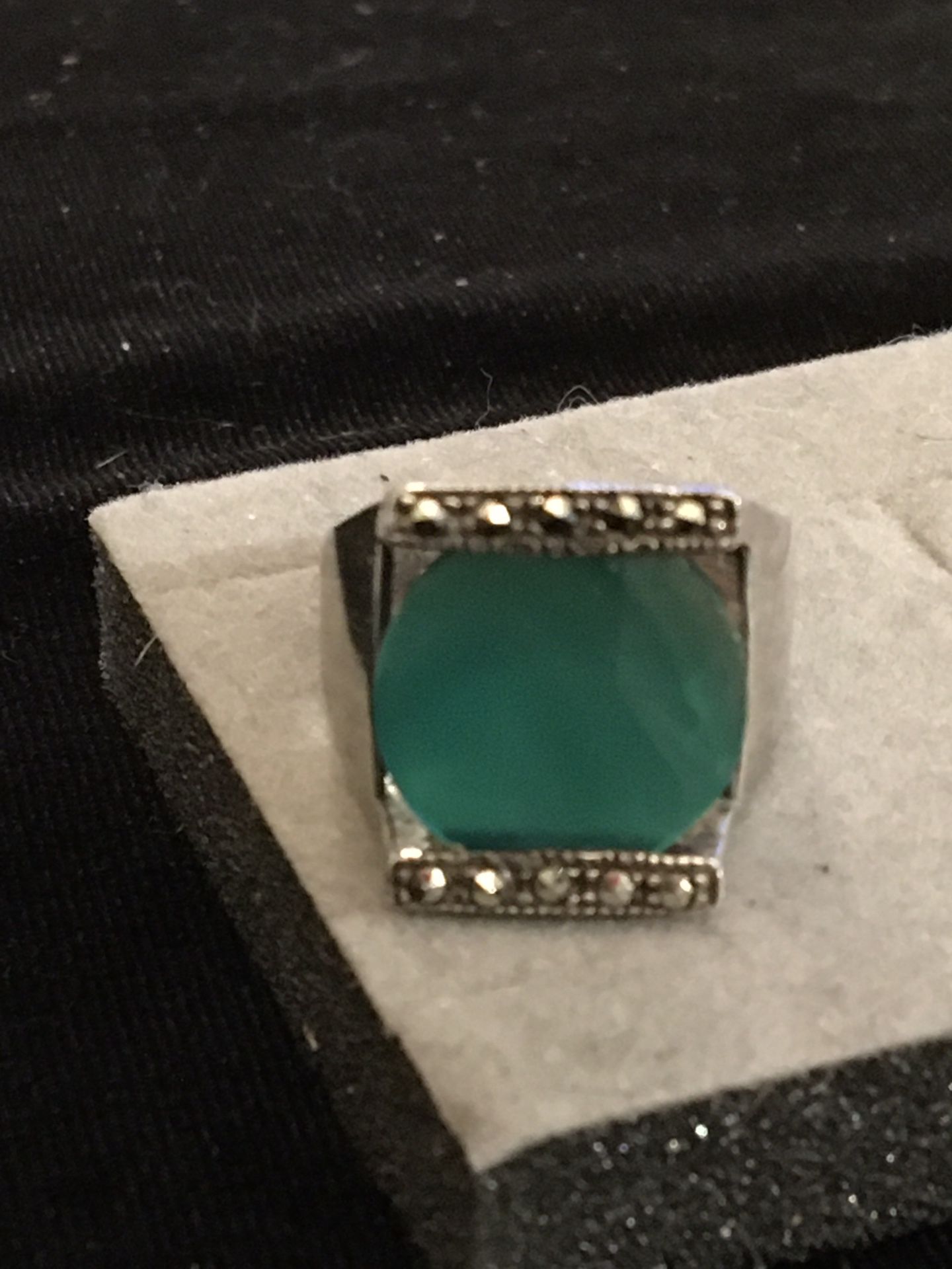 Unisex sterling silver round malachite and marcasite ring. Size 9.25. This is a stunning and very modern looking ring. Guaranteed no one has one like it. PayPal or cash only. Mailing extra.