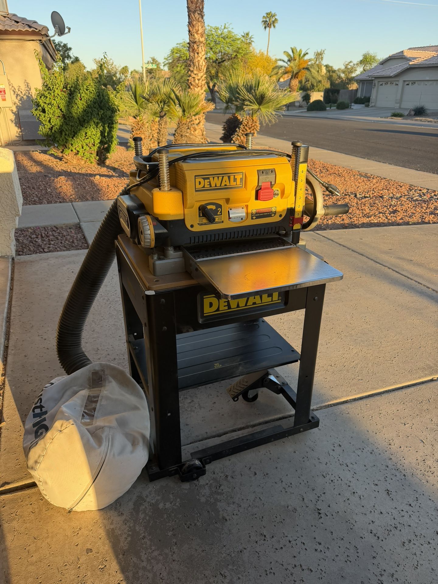 Great condition Dewalt planer with Dewalt rolling stand, bed extensions and its own dust collector from Rockler. No need to run a dust collection system. Priced to sell fast due to moving out of state. $400.00