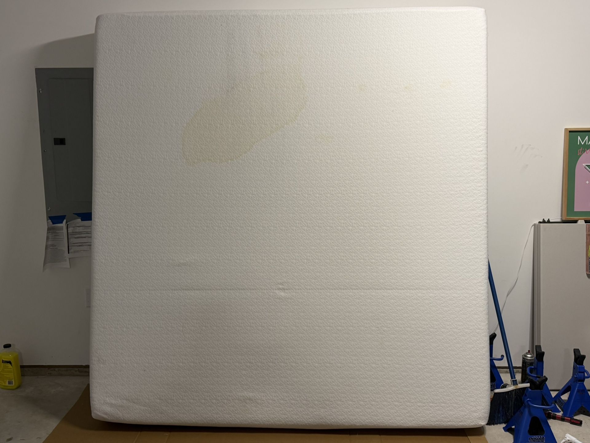 In good condition. It does have a light stain on it. Doesn’t smell and still have great support. Must pick up.
