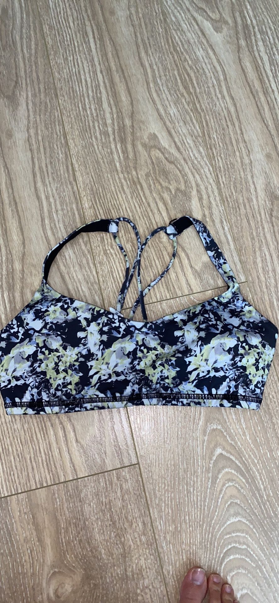 Size 8 lululemon sports bra. Like new, cut off the tags and put it in the wash but it’s a little small for me.