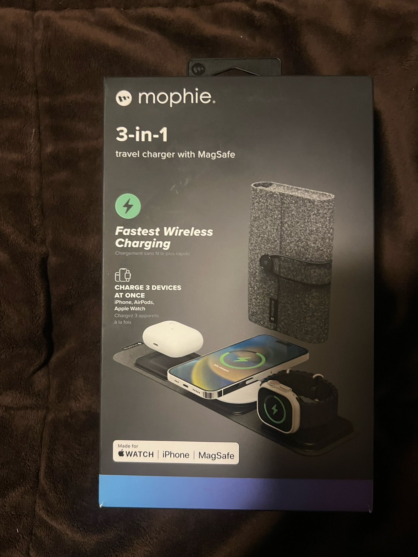 Brand new Mophie 3 in One charger, still in the box. Charges your IPhone, AirPods and Apple Watch all at once. Pretty sweet. A must have if you are an Apple User. Retail price is $80-$150, my price is $50. Located in Henderson, NV.