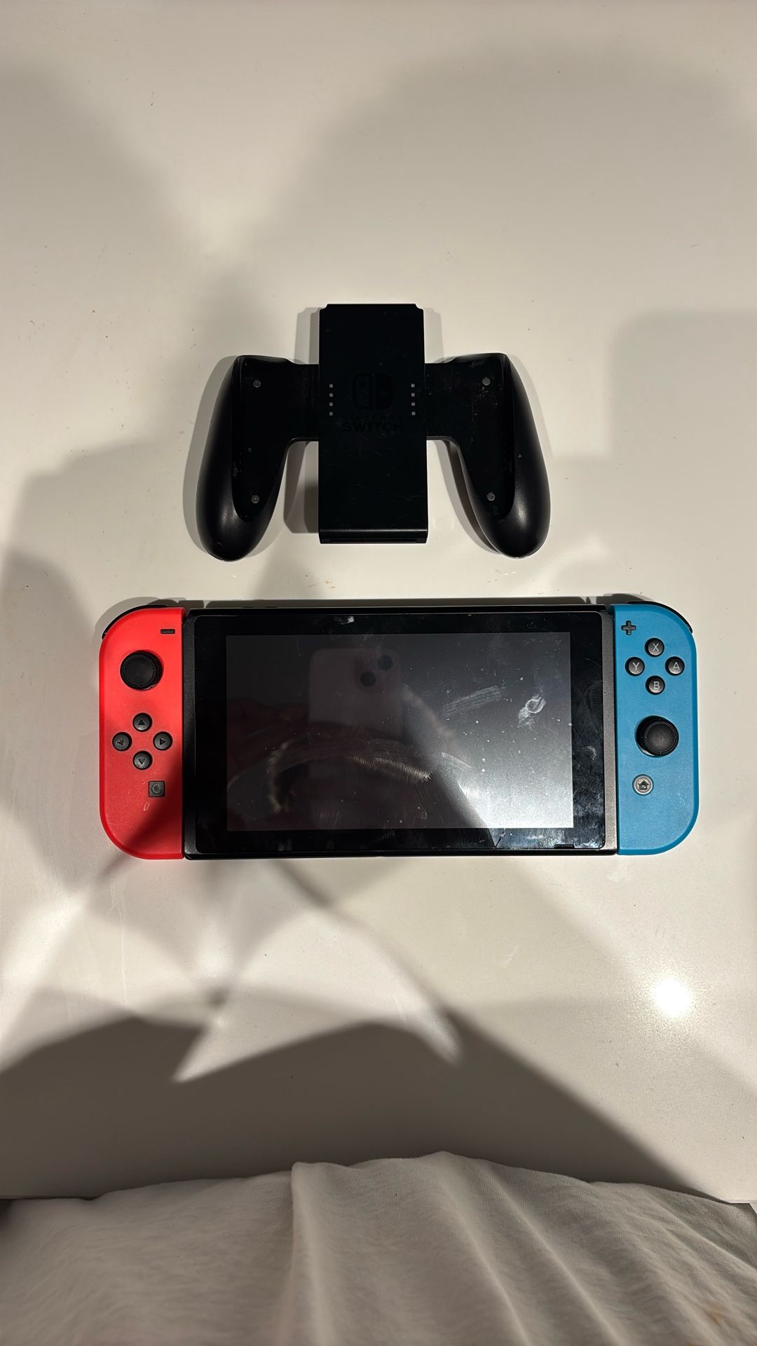 Nintendo Switch Console w/ Red & Blue Joy-Cons + Grip (Good Condition)