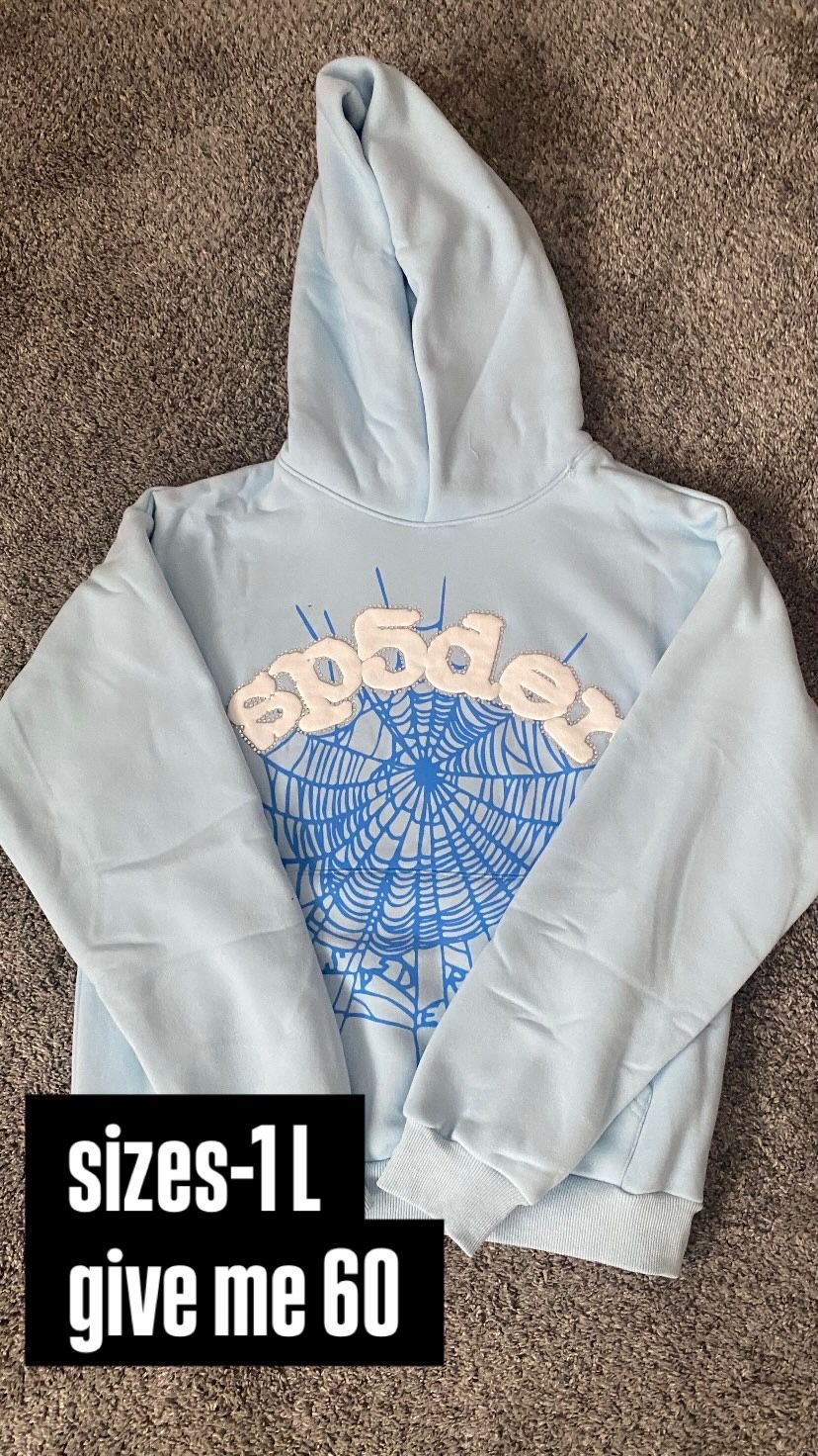 baby blue sp5der hoodie size large