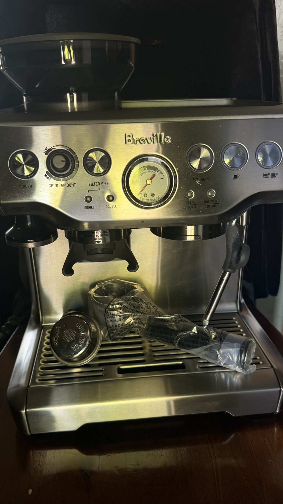 Breville Barista Express espresso machine in very good condition. This is a full, ready-to-use home espresso setup — no missing parts. Perfect for anyone who wants café-quality espresso, lattes, and cappuccinos at home. Included: • Built-in conical burr grinder • Portafilter • Multiple filter baskets (single & dual wall) • Razor dosing tool • Cleaning kit • Drip tray & insert • Hopper with lid • Original manuals Why there are multiple filter baskets: Breville includes different basket styles for beginners and more advanced espresso brewing. Extras are also great as backups or for keeping one set clean while using another. Condition: • Clean and well cared for • All parts included • Everything works as it should Retail is much higher — priced fairly for a quick, smooth sale. 📍 Local pickup 💵 $425 OBO