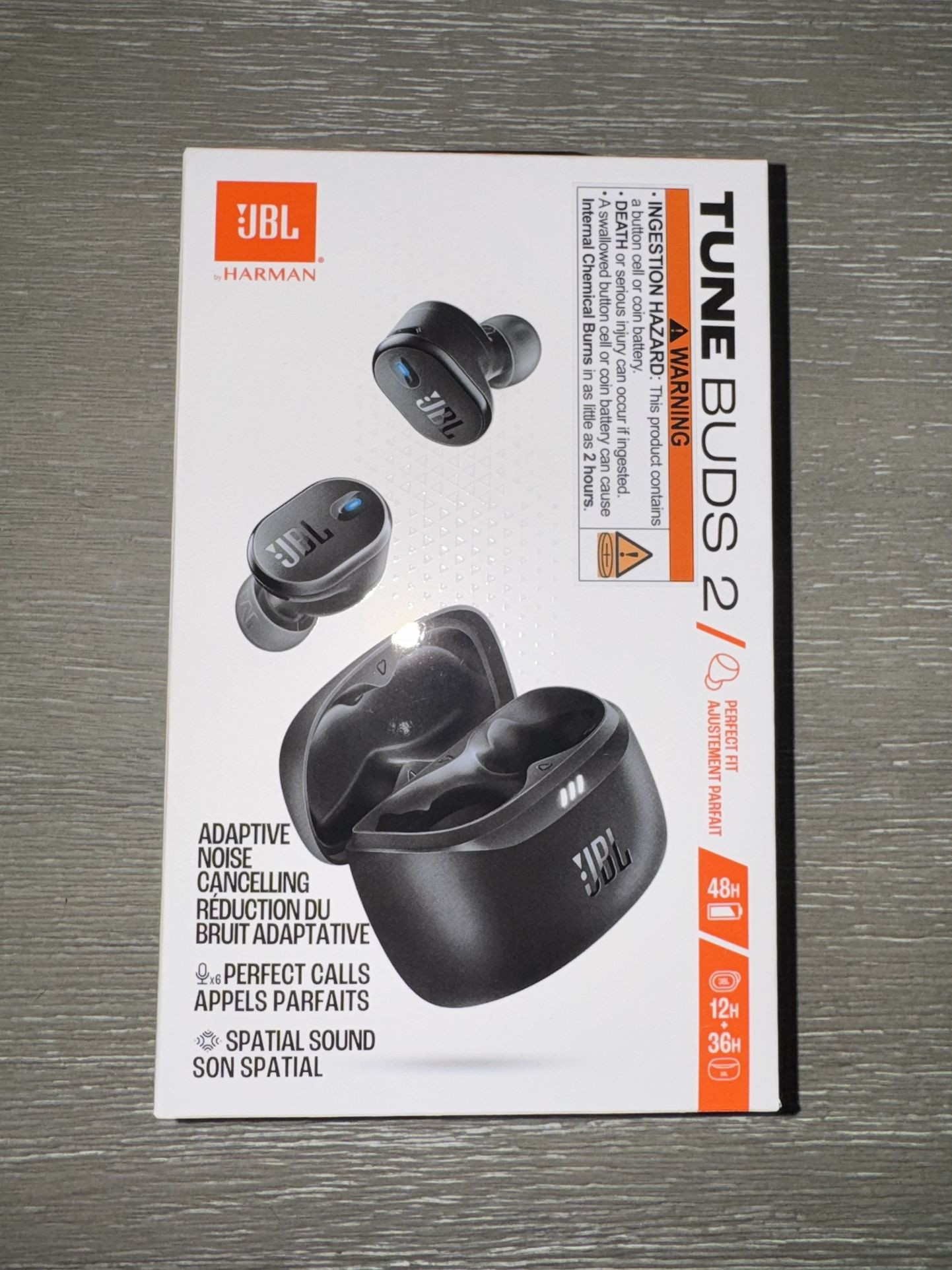 Got these as a company holiday gift, but I already have other wireless buds. No use for this. MSRP is $59.99 + Tax. Save yourself over 40%! Website description: Highlights JBL Pure Bass Sound with Spatial Sound Adaptive noise cancelling with Smart Ambient 6 mics for perfect calls and customized call experience Personi-Fi 3.0 Up to 48 hours total playback IP54 dust and water resistant* Multi-point connection + Fast Pair enabled by Google JBL headphones app Description Take on your day one song at a time with JBL Tune Buds 2 true wireless earbuds and Adaptive Noise Cancelling. They deliver up to 48 hours of exceptional JBL Pure Bass Sound and JBL Spatial Sound, while the ergonomic (and water and dust resistant) design gives you all-day comfort in any weather. Enjoy perfect-sounding calls without ambient noise, all managed using intuitive touch controls. With Adaptive Noise Cancelling and Smart Ambient technology, you can tune out the world, or choose how much you engage with your surroundings. You can even personalize your sound experience with the JBL Headphones app and tailor audio around you with Personi-Fi 3.0. Pop in the JBL Tune Buds 2 and experience your world your way.
