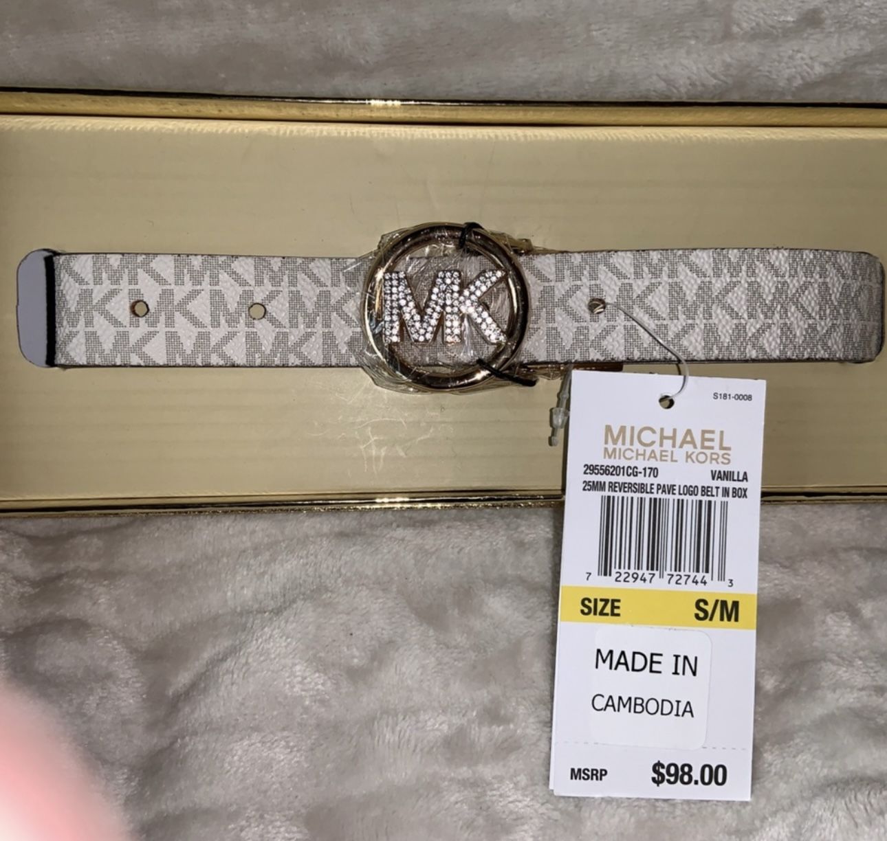 NWT Michael Kors Signature White Gift Boxed Belt, size S/M