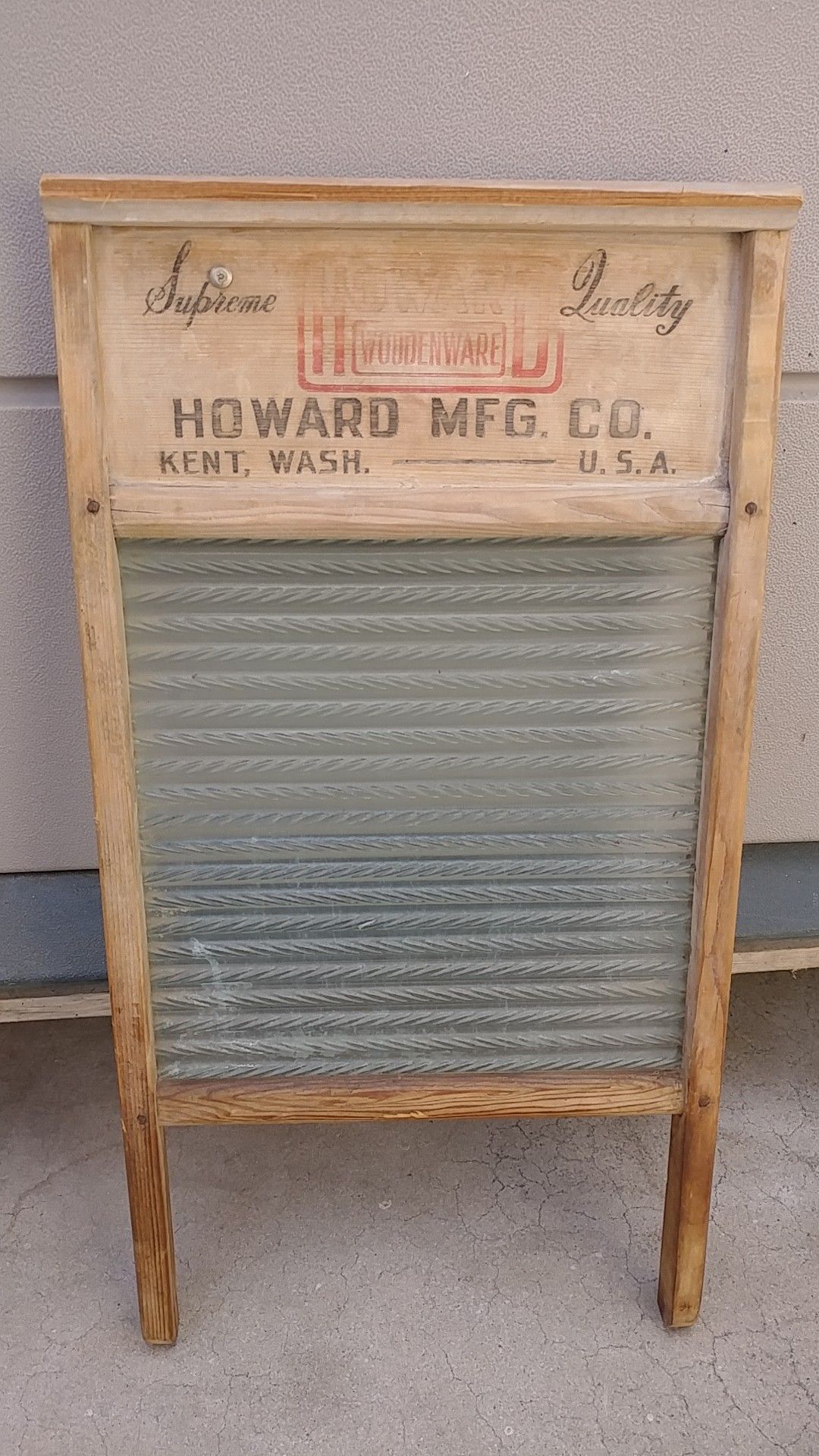 Antique 1940's Howard's Woodenware Glass Washboard. Made in U.S.A.