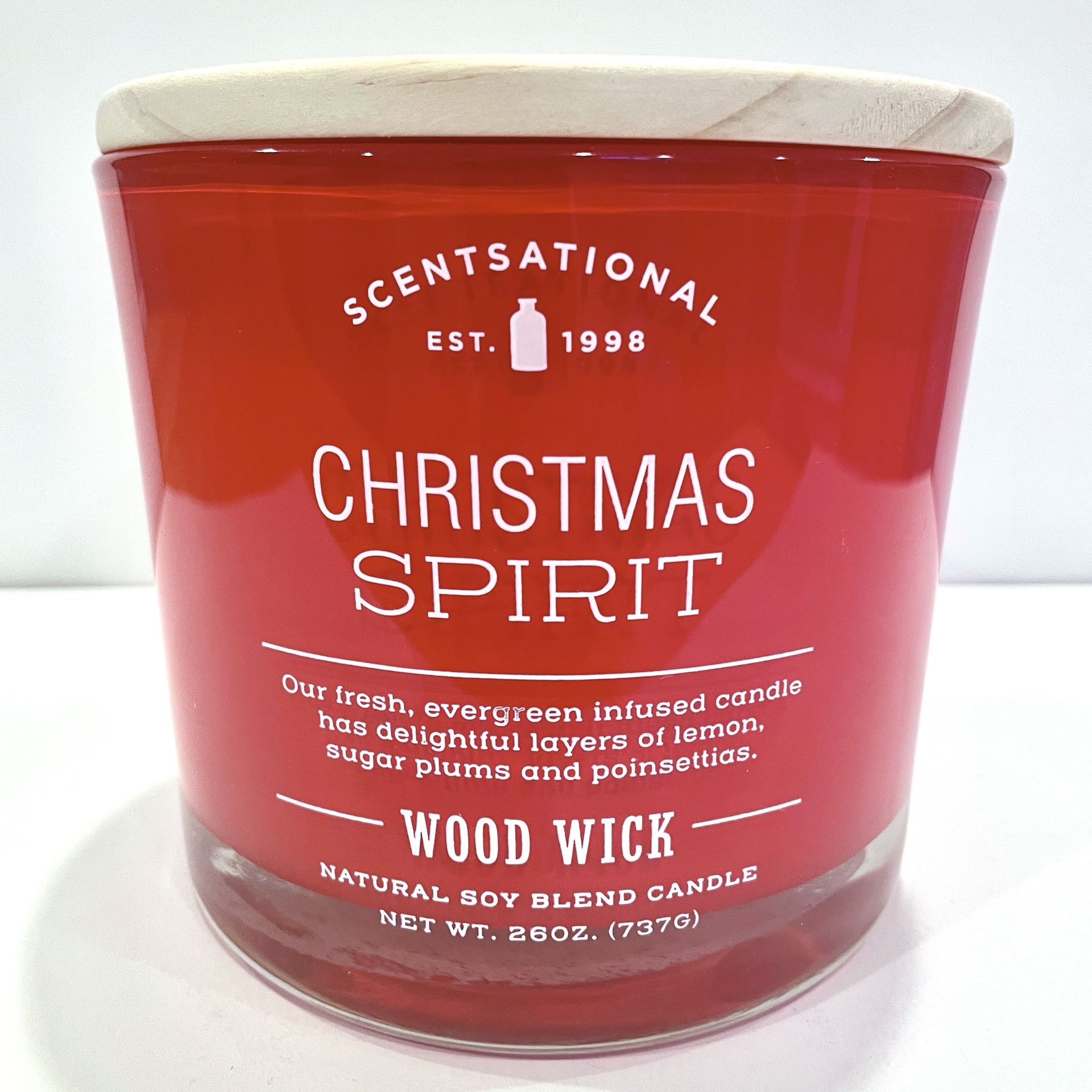BRAND NEW - Scentsational CHRISTMAS SPIRIT Jumbo Wood Wick Evergreen Scented Natural Holiday Soy Candle XL. Check my closet for more sizes and flavors. Bundle and Save on shipping! Fresh Evergreen Scent with delightful layers of lemon, sugar plums and poinsettias. Natural Soy Blend Double Wood Wick Comes in a 26oz bright red glass Jar with sustainable wooden Lid. Approximately 80 hour burn time. Poured in the USA