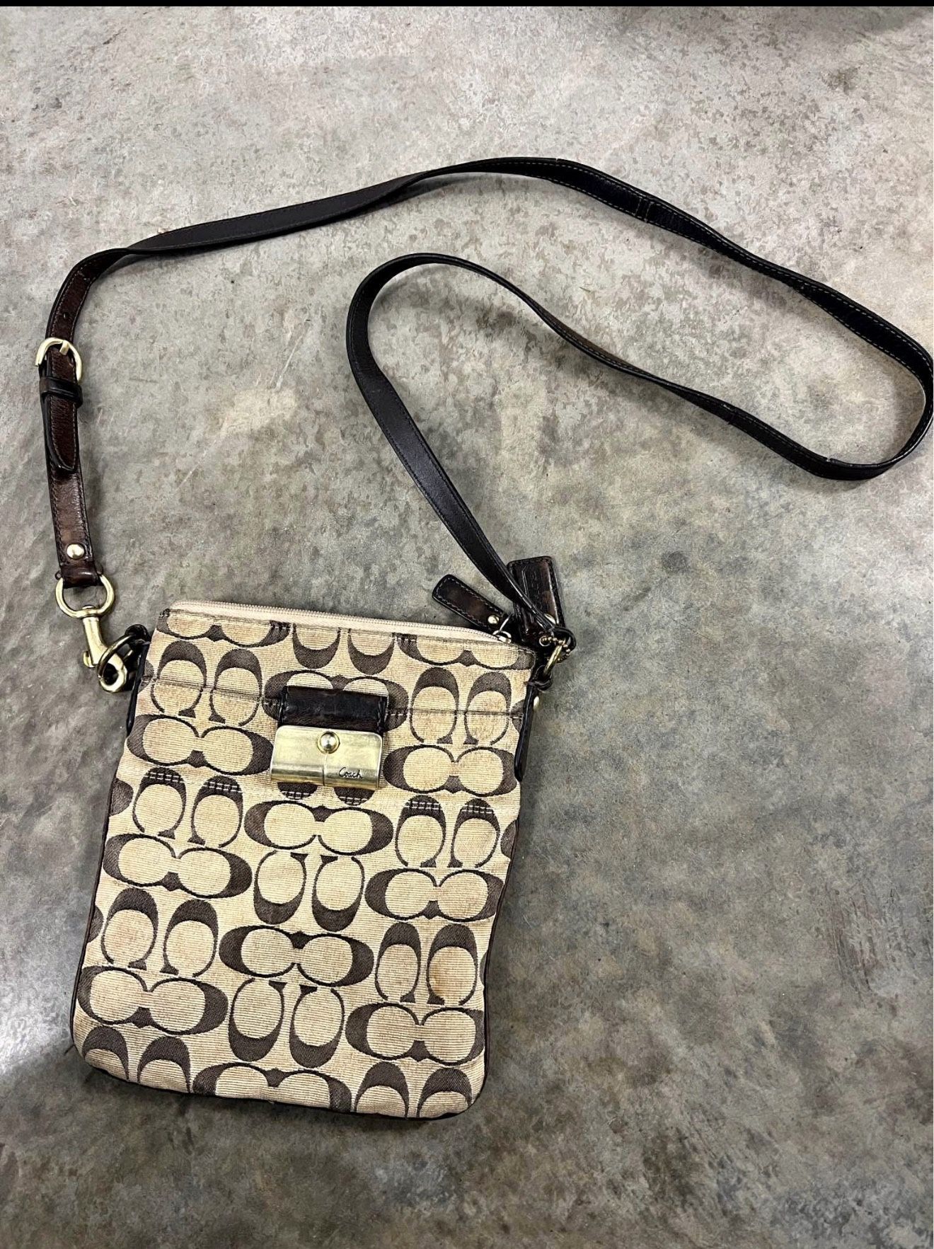 Coach Women's Monogram Small Crossbody Bag Adjoustable Shoulder Strap Brown