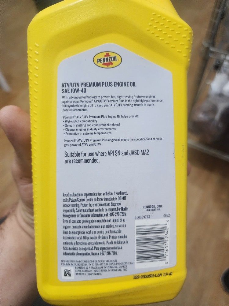 ATV/UTV Premium Plus safe 10w-40 4 bottles of 946ml 1QT each brand new all 4 of them for $30 dollars . Only pick up on the upper west side.
