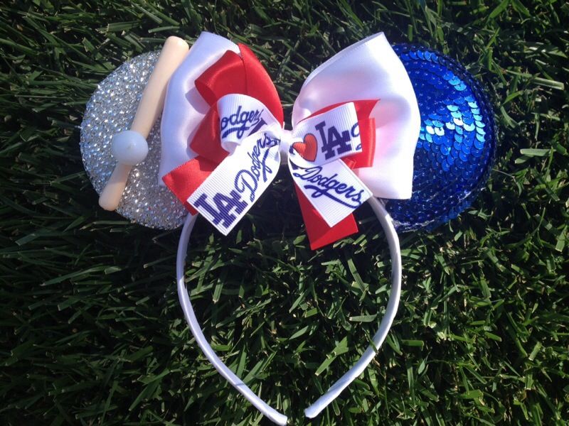 ⚾️Great for any age:) 2 different color sequin ears with 3d bat and ball,with dodger bow. any dodger fan will love this💙