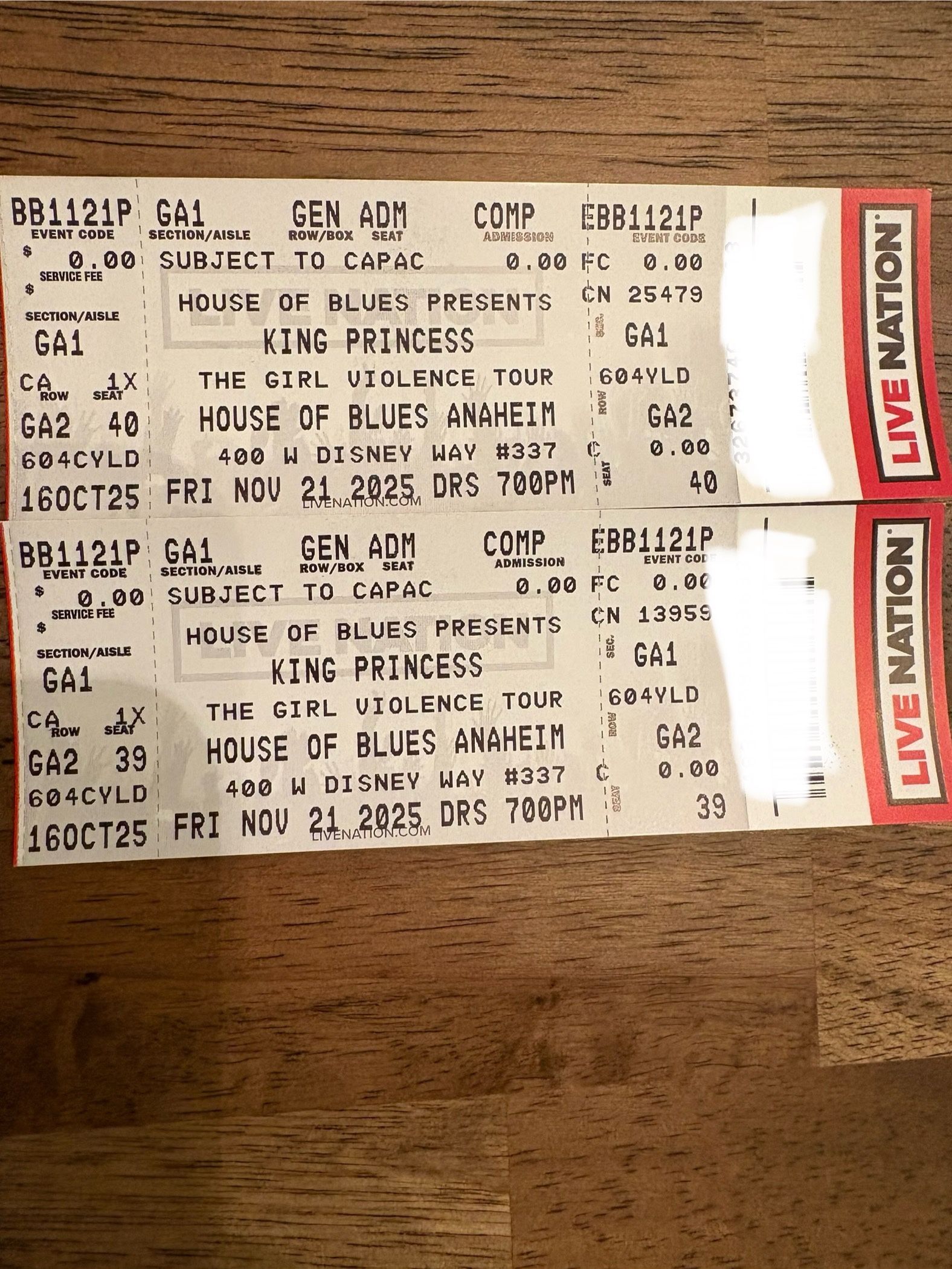 2 tix for $72 1 tix for $38