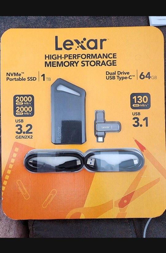 Lexar Blaze 1TB Portable External SSD USB 3.2 Gen 2x2, NVMe, 64GB USB-C Flash Brand New