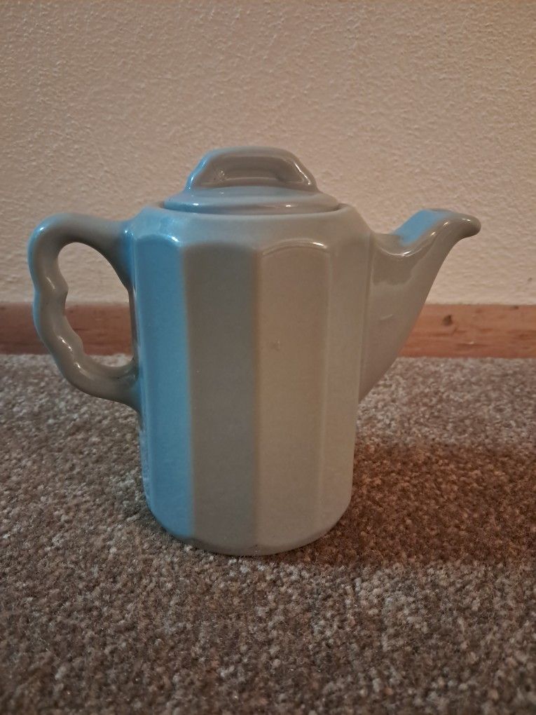 Vintage Syracuse Teapot -grey panel sided glossy finish mid-century modern teapot (6"L x 3.5" W x 5.5"H). Crack on underside of lid.