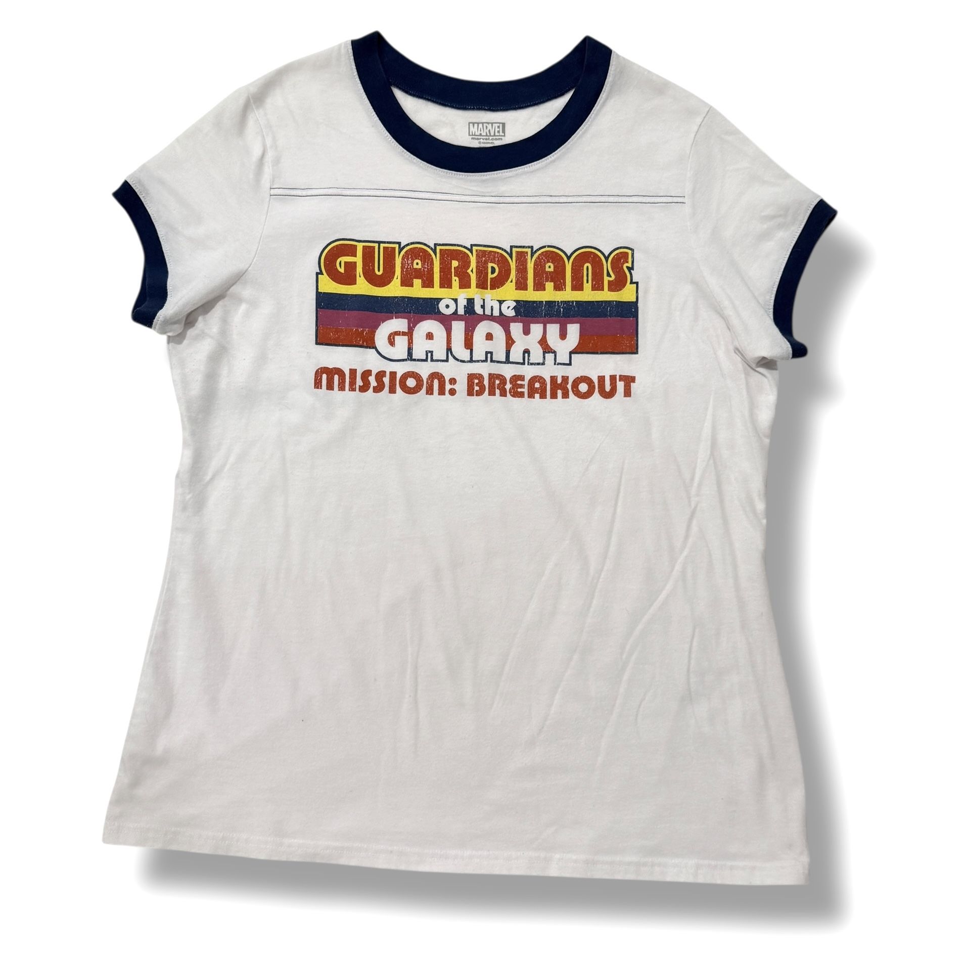 Disney Parks Guardians Of The Galaxy Mission Breakout Ringer Tee DCA Adult XL The Disney Parks Ringer Tee from California Adventure is in size XL, designed for adult women. Featuring the popular Guardians of the Galaxy franchise, this collectible item is perfect for Disney fans looking to showcase their love for the beloved characters and stories, offering a unique and stylish way to represent their favorite galactic heroes. 50% cotton 50% polyester 26.5” shoulder to bottom 21” across underarms Purchased at DCA and only worn on vacation Perfect for Epcot or every day!
